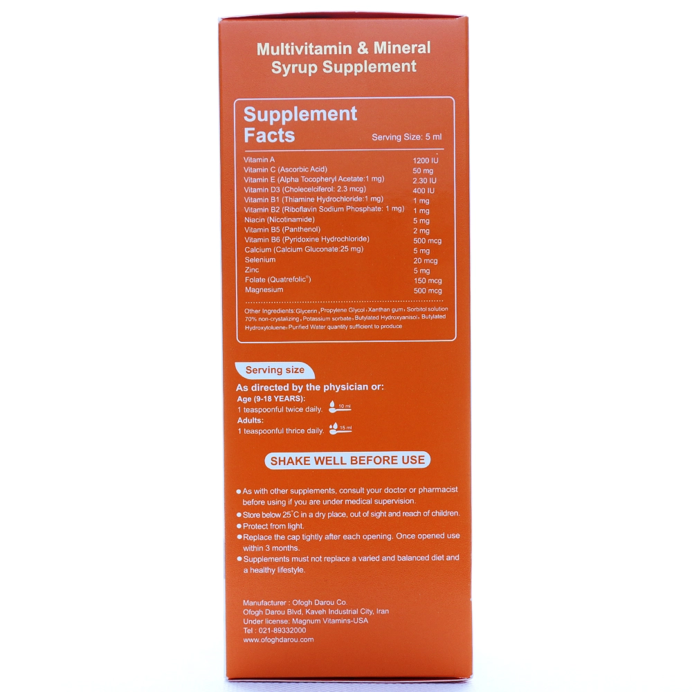 شربت اپتامین فمیلی مگنوم ویتامینز، یک مکمل مولتی ویتامین مینرال با فرمولاسیونی تخصصی و مطابق با استانداردهای GMP مناسب کودکان بالای ۹ سال، نوجوانان و بزرگسالان میباشد.