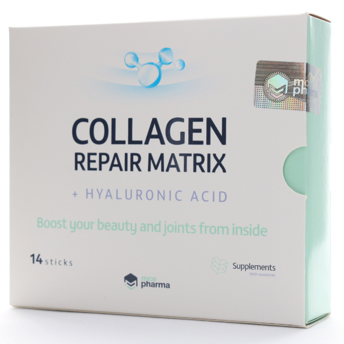کلاژن رپیر ماتریکس حاوی کلاژن پپتید، هیالورونیک اسید، ویتامین C، زینک، سلنیوم و ویتامین ب2 بوده که در بهبود قابلیت ارتجاعی، آبرسانی و کاهش نشانههای پیری مفید می باشد. و همچنین باعث به افزایش استحکام ناخنها و کاهش شکنندگی آنها می شود.