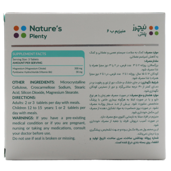منیزیم و ویتامین B6 در دوران شیردهی نیز نقش مهمی در حفظ انرژی، کاهش خستگی و پشتیبانی از عملکرد عصبی و عضلانی مادر دارند. این ترکیبات همچنین میتوانند به تعادل خلقی مادر کمک کنند. اما به دلیل احتمال انتقال ترکیبات فعال به شیر مادر، پیش از مصرف قرص منیزیم B6 در دوران شیردهی، مشورت با پزشک ضروری است.قیمت قرص منیزیم B6 نیچرز پلنتی
