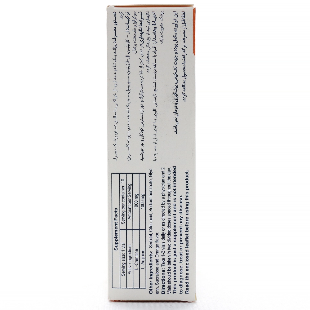 هر ویال حاوی 1000 میلیگرم ماده موثره ال-کارنیتین و 1000 میلیگرم ال آرژنین است که در تسریع اکسیداسیون چربیها، کمک به کاهش وزن، افزایش سطح انرژی و کاهش خستگی ناشی از تمرینات ورزشی موثر است. این مکمل انتخابی ایدهآل برای ورزشکاران و افرادی است که به دنبال بهبود ریکاوری و افزایش انرژی هستند.