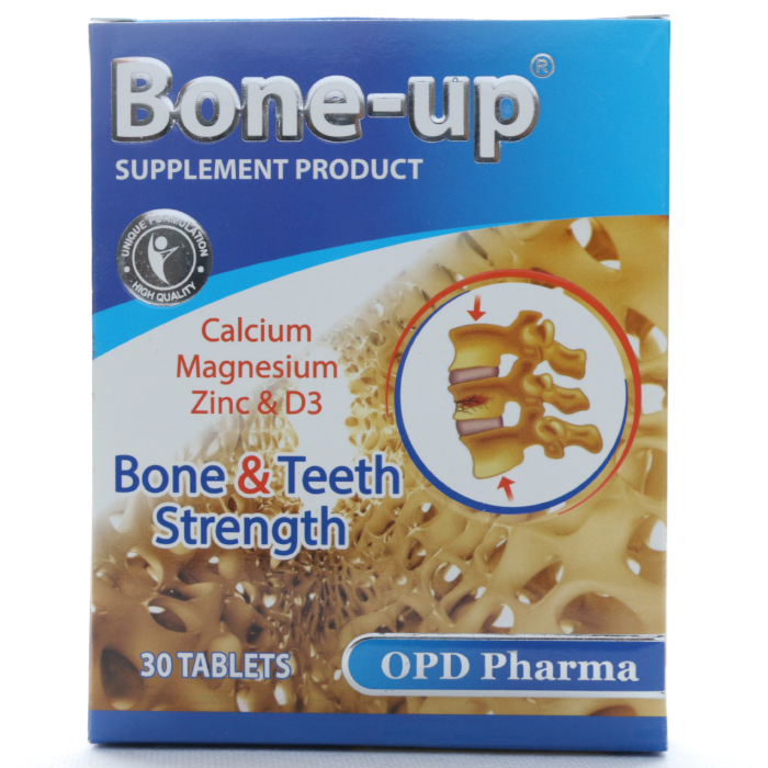 تراکم استخوانها پس از ۳۰ سالگی به تدریج کاهش مییابد. به همین دلیل، مصرف مواد غذایی غنی از کلسیم و سایر ویتامینهای ضروری برای استخوانها اهمیت ویژهای دارد. شیر و دیگر لبنیات مانند پنیر و ماست از بهترین منابع کلسیم هستند که باید به طور روزانه مصرف شوند. سبزیجات تیرهرنگ مانند برگ شلغم، کلم پیچ و اسفناج نیز به تقویت استخوانها کمک میکنند چرا که غنی از ویتامین K هستند که در ساخت پروتئینهای استخوانی و جلوگیری از دفع کلسیم در ادرار مؤثر است. علاوه بر این، غذاهایی مانند ماهی سالمون، تخممرغ، ساردین، آجیل، انجیر، توفو، بامیه، میگو و پای مرغ نیز از گزینههای عالی برای تقویت استخوانها هستند. قرص بن آپ او پی دی فارما یک مکمل غذایی جهت کمک به استحکام استخوانها و دندانها است. این قرص حاوی کلسیم، منیزیم، زینک و ویتامین D3 است. همچنین زینک یا همان روی موجود در قرص بن آپ او پی دی فارما وظیفه ترمیم شکستگی استخوانهای طولانی را برعهده دارد.روش مصرف قرص بن آپ