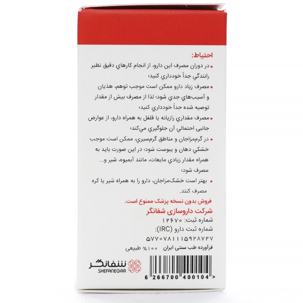 همچنین، مصرف این کپسول به همراه غذاهای لطیف، یا با نوشیدنیهایی نظیر آب عسل یا دمنوشهای ملایم چون بادرنجبویه، میتواند مزاج دارو را متعادلتر ساخته و جذب آن را بهبود بخشد.