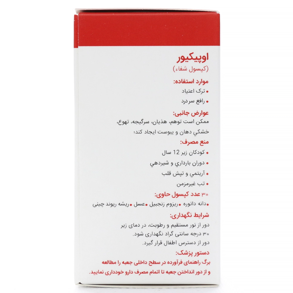 مطالعات حیوانی و بالینی نشان دادهاند که کپسول شفا اپیکیور در مقایسه با برخی درمانهای رایج، در کنترل علائم ترک و کاهش اضطراب و افسردگی اثربخشی قابلتوجهی دارد.کپسول اوپیکیور با نام سنتی «حبالشفاء» به صورت کپسول و در بستهبندی ۳۰ عددی عرضه میشود و مصرف آن باید صرفاً با تجویز پزشک یا درمانگر طب سنتی انجام گیرد.
