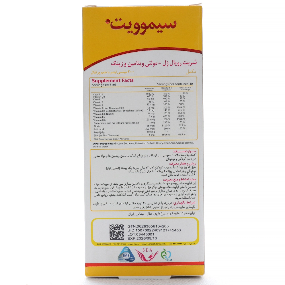 شربت رویال ژلی سیموویت سیمرغ دارو