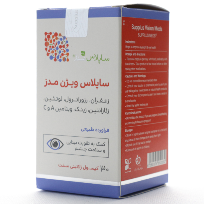 - قرص ساپلاس ویژن مدز، برای محافظت از شبکیه در برابر استرس اکسیداتیو و نور آبی