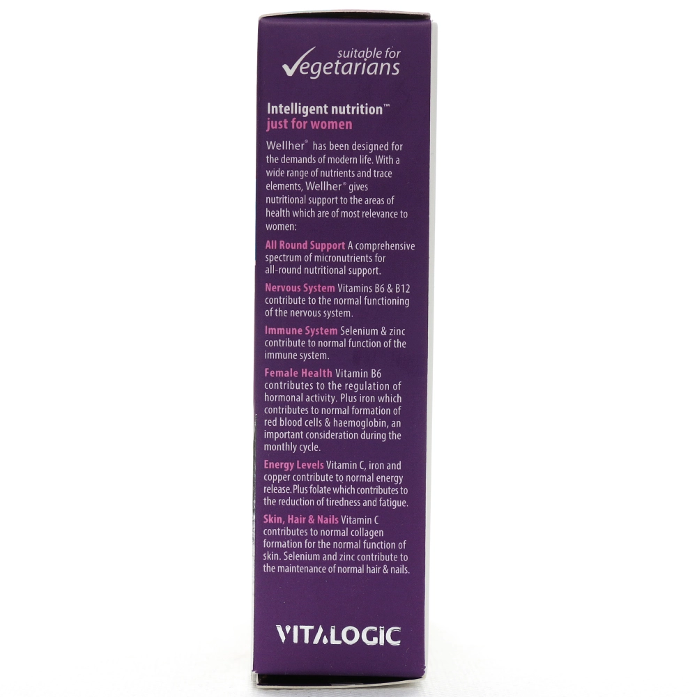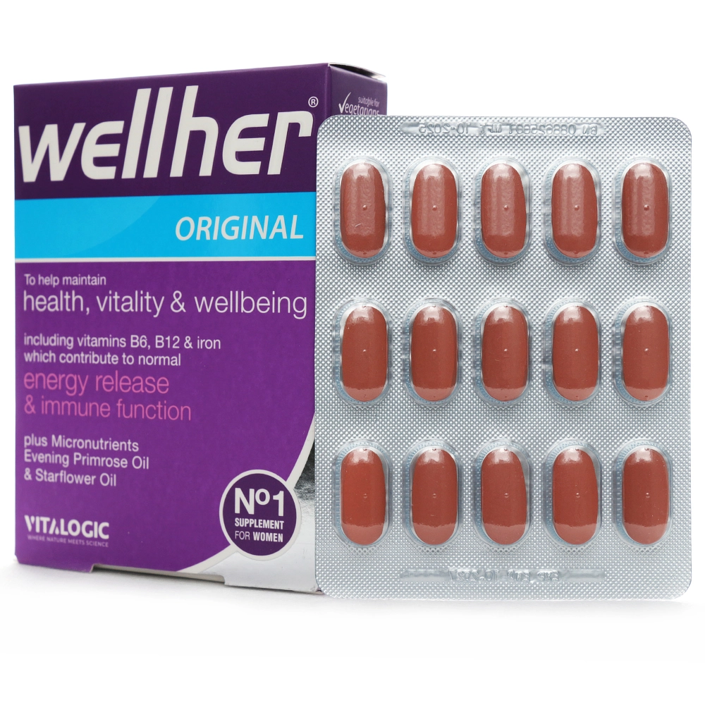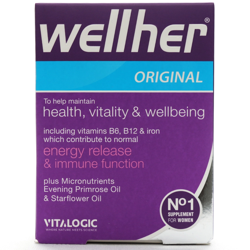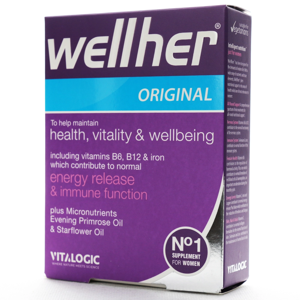 قرص ول هر اورجینال مکمل تخصصی مولتی ویتامین و مواد معدنی ویژه بانوان است که با فرمولاسیونی کامل از ویتامین ها، مواد معدنی و ترکیبات طبیعی به افزایش سطح انرژی، کاهش علائم دوران قاعدگی و یائسگی، سلامت پوست، مو و ناخن، سلامت قلب و عروق، عملکرد طبیعی سیستم عصبی، تقویت سیستم ایمنی و پیشگیری از کم خونی کمک می کند.
