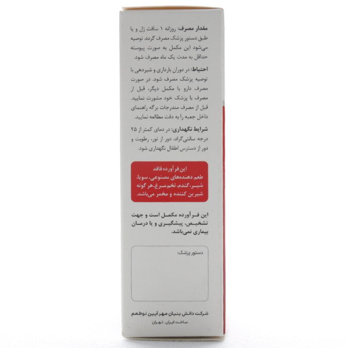 - این فرآورده مکمل است و جهت تشخیص، پیشگیری و یا درمان بیماری نمی باشد.